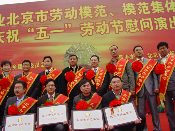 “五一”國際勞動節來臨之際,江蘇華建許世明項目部被北京市人民政府隆重表彰為“北京市模范集體”。今年是北京市五年一次的勞動模范和先進工作者表彰年,是北京市各類表彰中含金量較高的,并首次將非京籍勞動者納入推薦評選范圍。在2000多家外地來京施工企業中,僅有4個項目部被北京市政府授予“北京市模范集體”稱號,十一名同志被授予“北京市勞動模范”稱號。許世明項目部自組建以來,已先后榮獲“北京市優秀青年突擊隊標桿”、“全國職工職業道德建設先進集體”、“北京市工人先鋒號”、“北京市模范集體”等光榮稱號,許世明本人2007年榮獲“首都勞動獎章”,成為江蘇華建以及諸多外地來京施工企業的典范。