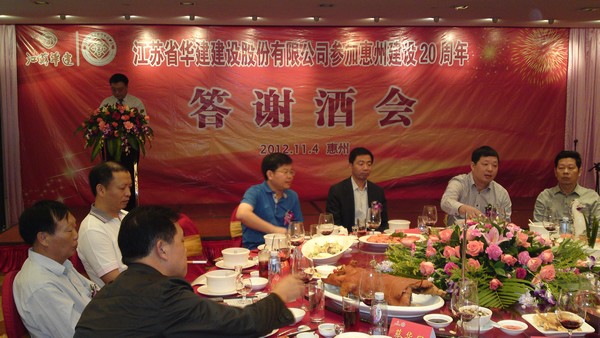 公司在惠隆重召開參加惠州建設20周年慶典暨答謝酒會 時間:2012-11-06 4596 公司在惠隆重召開 參加惠州建設20周年慶典暨答謝酒會 11月4日,公司在惠州凱賓斯基酒店王子飯店隆重召開參加惠州建設20周年慶典暨答謝酒會,公司副董事長、總經理宗有農主持酒會并作開場致辭。惠州市有關政府部門、部分合作方企業的負責人,華建聯盟成員單位負責人,公司董事、監事和高管等130余人出席慶典?;葜莨究偨浝砣A恒榮介紹了公司參加惠州建設20年的有關情況?;葜菔泄ど搪撝飨?、公司戰略合作伙伴恒宇實業集團公司董事長楊滿芳代表合作方發言,惠州市住房和城鄉規劃建設局副局長陳訓政代表政府主管部門致辭,分別對江蘇華建進駐惠州施工、參加惠州建設20周年表示祝賀。公司董事長陸金龍代表公司總部對惠州市有關政府部門、相關合作方和社會各界人士給予公司的關心和支持表示誠摯的感謝,并表達了進一步加大支持力度、加強戰略合作、加快科學發展的意愿。 (峰年 文/圖)