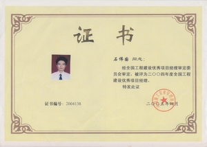 他既懂技術又懂管理,是個復合型人才,多次被評為江蘇省優秀項目經理、江蘇省建筑業技術進步先進個人、揚州市有突出貢獻的中青年專家、全國優秀項目經理、創魯班獎工程項目經理,被聘為廣東省、深圳市建設工程專家庫專家。