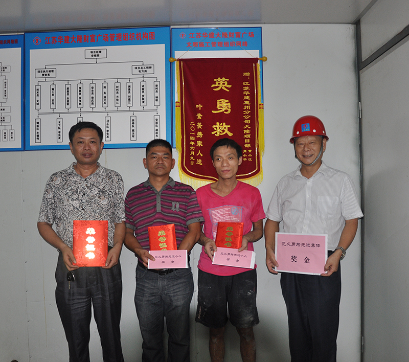 會(huì)上,惠州公司副總經(jīng)理、總工程師龐文榮、分工會(huì)主席王健代表分公司經(jīng)理室和工會(huì)向肖小平、黃小江兩位同志發(fā)放“見義勇為先進(jìn)個(gè)人”證書,向大隆財(cái)富廣場(chǎng)項(xiàng)目部發(fā)放“見義勇為先進(jìn)集體”證書,并給予一定數(shù)額的現(xiàn)金獎(jiǎng)勵(lì)。同時(shí)號(hào)召大家向兩位同志學(xué)習(xí),學(xué)習(xí)他們舍己救人的崇高精神,學(xué)習(xí)他們樂(lè)于助人的高尚品德,為樹立公司良好精神面貌、傳遞社會(huì)正能量做出新的貢獻(xiàn)。