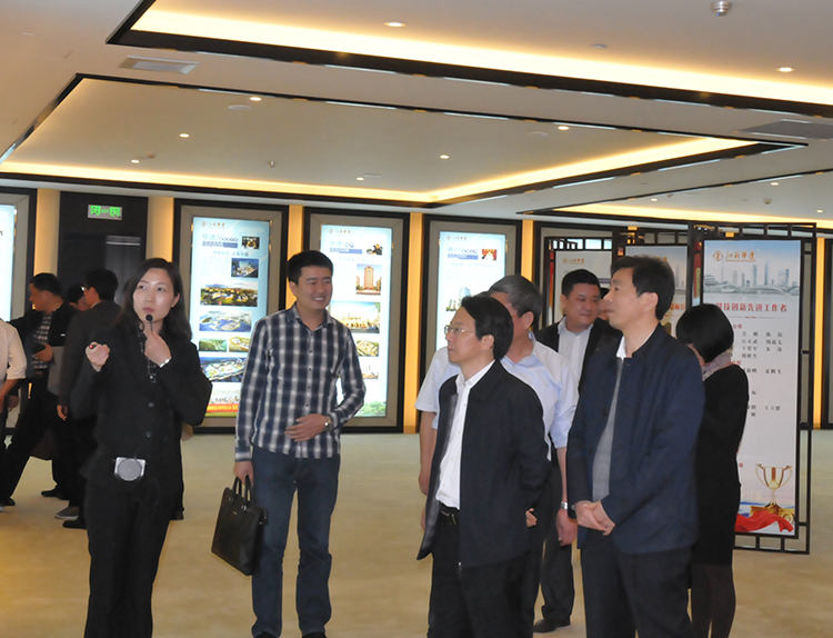 在公司企業展示中心,陸金龍董事長與吳榮勝區長進行了友好會面。雙方就廣安官盛新區幸福家園項目工程進展情況以及下一步工作計劃進行了溝通。吳榮勝區長對華建全力以赴支持廣安建設表示感謝,他認為華建與廣安的合作非常有成效,工程質量高、速度快,效果好,得到上級領導、人民代表、干部群眾的一致認可,也在廣安大地上樹起品牌,贏得口碑,希望雙方目標和關注點高度一致,相互溝通,增進了解,增強互信,愉快合作,區委、區政府將竭盡全力做好溝通協調,為工程項目順利開展提供保障,同時希望與華建及聯盟企業多領域、深層次合作,共同建設好新廣安。陸董事長對吳區長一行的來訪表示熱忱歡迎,他表示廣安區的領導班子是一個會干事業、團結奮進的集體,新區的建設也必將為下一代留下寶貴財富。華建與廣安區溝通順暢,精誠合作,公司將和廣安區一起面對困難,迎接挑戰,并一如既往做好工程質量,確保序時進度??偛繉樵擁椖刻峁┤轿恢С?,同時還將帶領聯盟企業和廣安在產業合作、地產開發、施工管理等多方面深層次合作,共同為小平家鄉建設添磚加瓦。