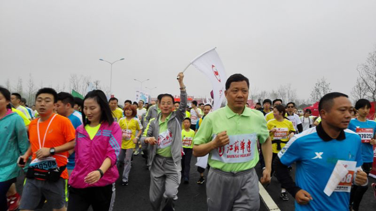 4月19日上午8點,由中國體育協會、江蘇省體育局、揚州市政府共同主辦的“中國聲谷杯”2015揚州鑒真國際半程馬拉松賽暨全國半程馬拉松錦標賽正式鳴槍開賽。江蘇華建愛跑團與來自全球43個國家和地區的3.5萬選手共同沖出起跑線。