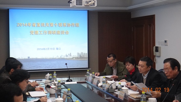 2月19日下午,2014年省直機關第十聯系協作組黨建工作調研座談會在江蘇華建海南分公司會議室召開,會議由海南省直機關工委副書記魏萍主持。