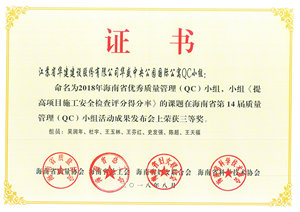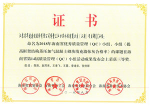 海南公司五項QC成果獲得省級表彰 時間:2018-09-03 3389 日前,海南省質量協會公布了2018年海南省“優秀質量管理(QC)小組”活動成果評比結果,海南分公司共有5項成果受到表彰。其中,海花島2#島三(一)期2-10-1地塊QC小組榮獲二等獎,博鰲三江口濱水旅游商業區(二期)項目部QC小組、三亞婦幼保健院整體搬遷(新址)建設項目QC小組、恒大海上帝景QC小組、華盛中央公園國際公寓QC小組榮獲三等獎。 (技術質量處)