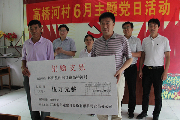 7月3日,宜昌分公司在宜昌市委常委、副市長(zhǎng)劉偉玲的見證下,與宜昌市江蘇商會(huì)和湖北廣盛建設(shè)公司共同參與秭歸縣兩河口鎮(zhèn)高橋河村精準(zhǔn)扶貧,各捐贈(zèng)精準(zhǔn)扶貧資金5萬元。