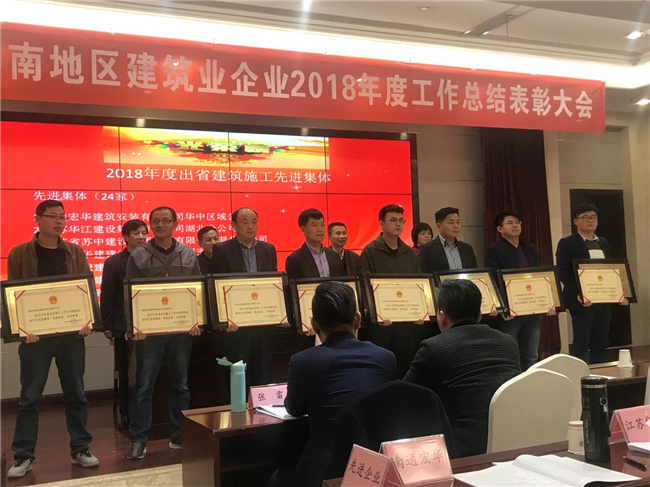 3月26日下午,2019年江蘇建筑業中南地區工作會議在湖北武漢召開,來自江蘇駐鄂、湘、贛多家建筑業企業近200名代表參加大會,江蘇省住建廳、湖北省住建廳相關領導、江蘇省住建廳駐中南辦事處主要負責同志出席會議并在主席臺就座。會上表彰了一批先進集體和先進個人。其中江蘇省華建建設股份有限公司湖北分公司被表彰為2018年度江蘇出省施工先進集體,吳潤年、劉遠位同志分別被表彰為2018年出省施工先進個人。(湖北公司)