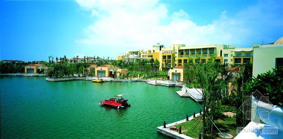 該建筑群具有獨特的景觀與風格,生態環境和諧完美,以海洋溫泉為核心,由兩座五星級大酒店、神秘島主題樂園、漁人碼頭、夢幻劇場、加勒比海岸、高爾夫項目、休閑垂釣區以及自駕車營地組成,是中國目前功能最齊全、綜合配套最完善的超大型旅游休閑度假區和國際會議中心。2007年4月,海泉灣度假區被國家旅游局授予全國首家“國家旅游休閑度假示范區”稱號。