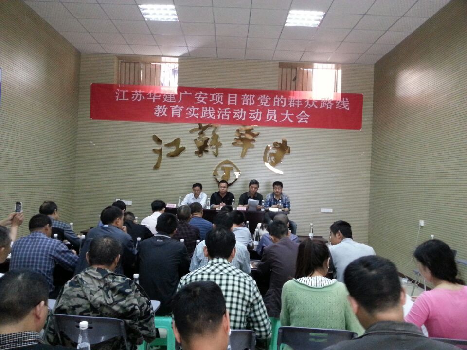 廣安官盛新區建設項目部黨小組召開黨的群眾路線教育實踐活動動員大會 時間:2014-04-17 5145 2014年4月16日,江蘇華建四川廣安官盛新區基礎設施暨美好家園建設項目部黨小組召開黨的群眾路線教育實踐活動動員大會。項目部所有黨員及各重要崗位管理人員共40余人參加會議。會議由珠海區域公司副總經理嚴正濤主持。珠海區域公司副總經理、總工程師周學軍在會上傳達了上級黨委關于深入開展黨的群眾路線教育實踐活動的實施方案和總的要求。珠海區域公司辦公室相關人員向與會者詳細介紹了本次活動所著力反對的“四風”的主要表現形式。官盛鎮黨委副書記馬江林參加會議,并對黨小組相關活動的開展提出了具體要求和指導意見。