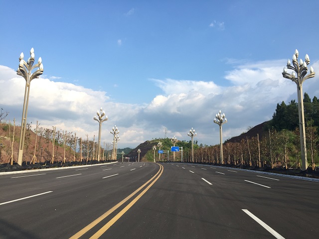 官盛大道二期是廣安官盛新區(qū)一條東西向城市主干道,道路全長1598米,標(biāo)準(zhǔn)路幅寬度46-60米,雙向六車道,設(shè)計時速60km/h。其中上段610米,作為一個單位工程單獨進行驗收。