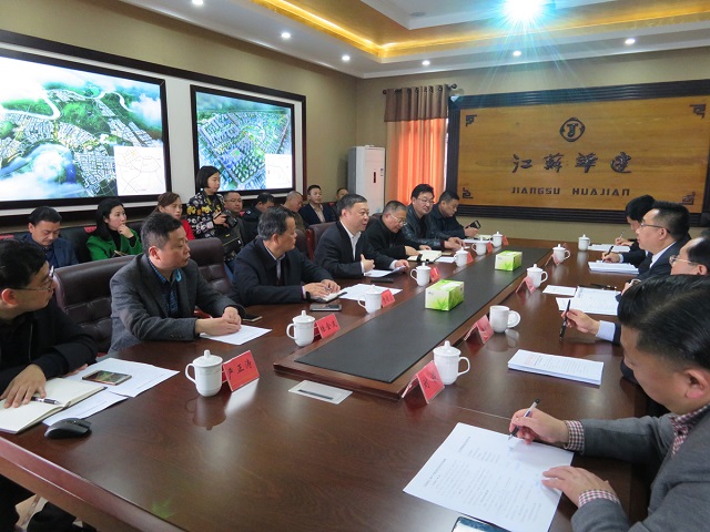 封頂儀式結束后,王董事長一行與岳池縣委書記鄭鵬程為首的縣四套班子領導在公司會議室舉行了座談會。鄭書記對華建管理層高度重視岳池項目建設表示感謝,并提出三點意見:一是岳池城東新區建設具有先導性,希望雙方在現有基礎上進一步深化互利合作;二是項目建設要把握好節奏,要更加注重標志性和引領性;三是雙方要切實規范項目運行,及時完善施工手續,確保項目順利推進。王宏董事長對岳池縣政府對岳池項目給予的關心支持表示感謝,他同時表示,此次來岳一是旨在加強和保持與岳池縣委縣政府的交流溝通,增進往來,深化雙方感情;二是實地了解項目建設情況,落實二期項目實施相關工作,協調各方工作對接,強化資金保障支持,以順利推進項目建設。雙方還就馬家村對口扶貧工作進行了溝通交流,王董事長強調江蘇華建將按照岳池縣政府的統籌安排,積極履行社會責任,認真研究如何實現精準扶貧并開辟生財之道,持續幫扶馬家村脫貧致富。