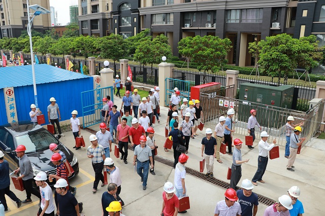 6月13日,2017年陽(yáng)江市建筑工程安全生產(chǎn)文明施工示范工地現(xiàn)場(chǎng)觀摩會(huì)在陽(yáng)江公司陽(yáng)光馬德里項(xiàng)目隆重舉行。陽(yáng)江市住房規(guī)劃建設(shè)局分管安全生產(chǎn)副局長(zhǎng),建管科、市質(zhì)安監(jiān)站全體人員,市建筑協(xié)會(huì)負(fù)責(zé)人,各縣(市、區(qū))住房規(guī)劃建設(shè)局分管安全生產(chǎn)副局長(zhǎng),建管股股長(zhǎng)、質(zhì)安監(jiān)站站長(zhǎng),市直各施工企業(yè)和監(jiān)理企業(yè)分管安全生產(chǎn)領(lǐng)導(dǎo)、質(zhì)安部門(mén)負(fù)責(zé)人,以及全市600余位建設(shè)施工企業(yè)代表參加大會(huì)并觀摩陽(yáng)光馬德里施工現(xiàn)場(chǎng)。