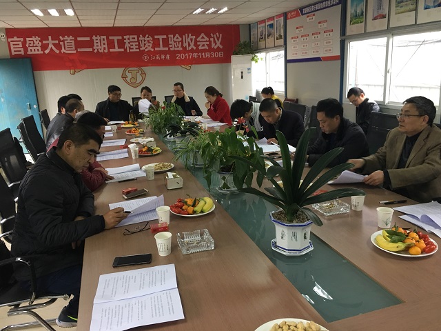 11月30日,廣安官盛新區BT項目官盛大道二期工程驗收會議在項目會議室召開,廣安區委常委、官盛新區管委會主任李常兵參加會議,會議由官盛新區管委會副主任鐘太剛主持。經項目勘察、設計、監理、區住建局、質監站等單位和業主現場代表實測檢查、分別總結匯報后,一致同意工程驗收合格。