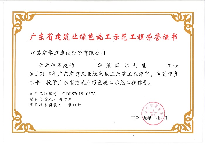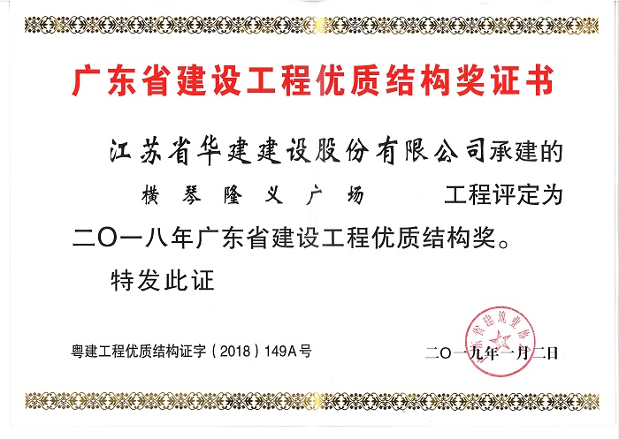 公司3個項目喜獲多項省級表彰 時間:2019-04-10 3818 近日,廣東省建筑業協會、廣東省建筑安全協會分別發文表彰了一批優質結構工程、綠色施工示范工程和安全文明工地,公司3個項目榮列榜單。其中,陽光馬德里、橫琴隆義廣場、華策國際大廈均被表彰為二〇一八年廣東省建設工程優質結構獎,華策國際大廈被授予廣東省建筑業綠色施工示范工程稱號,橫琴隆義廣場被評為2017年廣東省房屋市政工程安全生產文明施工示范工地。