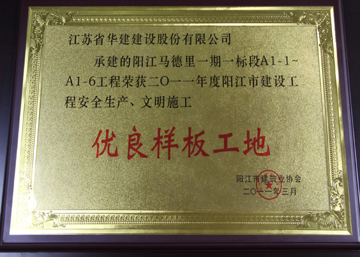 2011陽江馬德里項目獲陽江市安全生產文明施工優良樣板工地