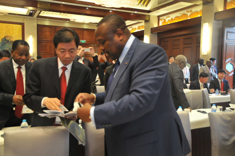 6月17日,來華進行國事訪問的剛果(布)共和國總統薩蘇在揚州街南書屋會見揚州企業家代表。在...
