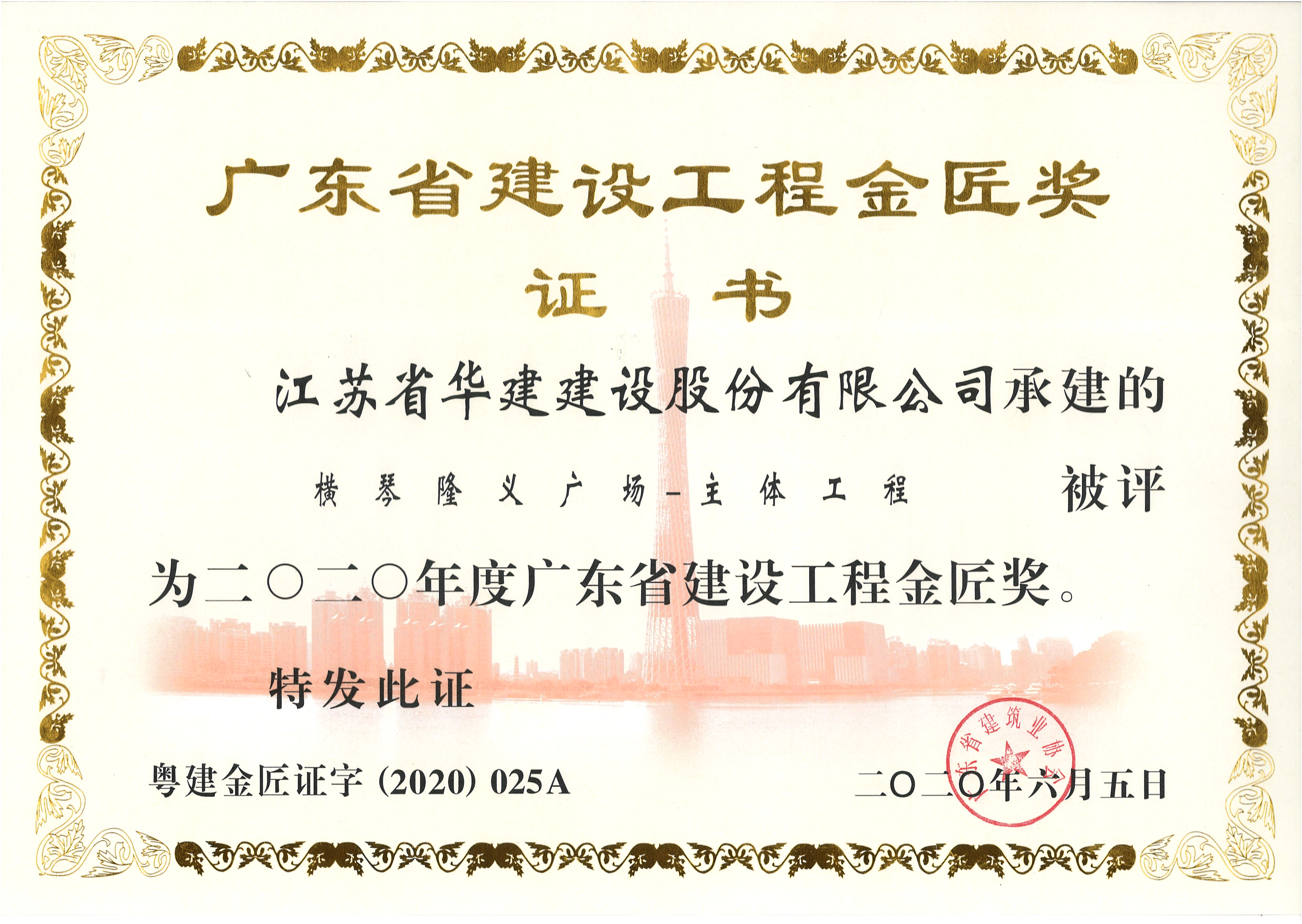橫琴隆義廣場-主體工程獲2020年度廣東省建設工程金匠獎