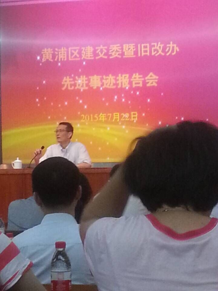 日前,上海區(qū)域公司外灘源項(xiàng)目部現(xiàn)場施工負(fù)責(zé)人楊連山同志應(yīng)邀,在上海市黃浦區(qū)建設(shè)交通委暨舊改辦開展的“三嚴(yán)三實(shí)”專題教育系列活動(dòng)中,做了專題為《愛崗敬業(yè),服務(wù)社會(huì),體現(xiàn)自身價(jià)值》的先進(jìn)事跡報(bào)告。黃浦區(qū)建交委、舊改系統(tǒng)及來自建設(shè)工地的工人黨員180余人參加了報(bào)告會(huì),邀請全國勞動(dòng)模范張國樑、上海市先進(jìn)工作者蔣昭瑜、上海市先進(jìn)農(nóng)民工楊連山等三位同志做先進(jìn)事跡報(bào)告,楊連山同志的事跡報(bào)告打動(dòng)了與會(huì)人員的心,引起了了大家的一致共鳴。