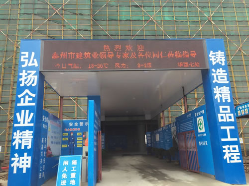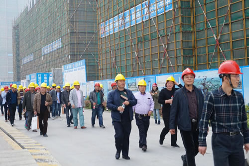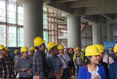 4月21日下午,江蘇華建蘇北分公司承建的泰州金融服務(wù)中心現(xiàn)場(chǎng),彩旗獵獵,熱鬧非凡,泰州市創(chuàng)精品工程觀摩會(huì)隆重舉行,泰州市建工局副局長(zhǎng)王京陵以及泰州市各市(區(qū))建筑業(yè)主管部門工程創(chuàng)優(yōu)負(fù)責(zé)人、建筑業(yè)協(xié)會(huì)負(fù)責(zé)人、全市二級(jí)以上資質(zhì)企業(yè)總工程師、技術(shù)負(fù)責(zé)人、創(chuàng)優(yōu)企業(yè)總工程師、項(xiàng)目經(jīng)理、技術(shù)負(fù)責(zé)人等共計(jì)400人參加了觀摩活動(dòng),與會(huì)人員對(duì)江蘇華建在建設(shè)金融服務(wù)中心興業(yè)大廈過(guò)程中創(chuàng)下了江蘇泰州地區(qū)多個(gè)之最表示了濃厚興趣,多個(gè)之最包括:高度最高(地上58層、設(shè)計(jì)高度: