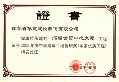深圳國際商會中心位于深圳市福田中心區(qū)6-3地塊,是深圳市CBD標(biāo)志性建筑,與會展中心隔街相望,是深圳會展經(jīng)濟圈的地標(biāo),也是深圳第一座擁有智能門禁系統(tǒng)、第一座擁有酒店式行車大廳、中心區(qū)第一座擁有商務(wù)直升機停機坪的寫字樓。 本工程是集辦公與商業(yè)為一體的超高層民用建筑,地下3層地上55層,總建筑面積為134081.38平方米,建筑高度216米,結(jié)構(gòu)形式上,主樓為內(nèi)筒外框勁性混凝土結(jié)構(gòu),外墻裝飾主要采用玻璃幕墻,干掛花崗巖和復(fù)合鋁板。本工程于2002年9月3日開工,2004年12月16日竣工。2003年下半年被評為深圳市優(yōu)質(zhì)結(jié)構(gòu)工程,2004年下半年先后通過了深圳市建筑業(yè)新技術(shù)應(yīng)用示范工程驗收和江蘇省第八批新技術(shù)應(yīng)用示范工程驗收,新技術(shù)應(yīng)用“總體上達到國內(nèi)領(lǐng)先水平”。此工程應(yīng)用了建筑業(yè)10項新技術(shù)中的9項,其他新技術(shù)8項,重點創(chuàng)新新技術(shù)2項。在施工過程中,多次受到有關(guān)各方組織的觀摩會、參觀會,2005年獲深圳市優(yōu)質(zhì)工程“金牛獎”、廣東省“金匠獎”、江蘇省“揚子杯”,并榮獲“中國十大金牌寫字樓”榮譽稱號。2006年獲全國建筑最高獎——魯班獎。