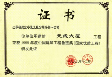 深圳無線大廈 時間:2008-12-29 11853 無線大廈(現名國通大廈)位于福田區新洲,建筑面積73069M2,高度201.5M,地下室2層,地上43層,是一座高智能化的電信寫字樓,結構設計為鋼筋砼框架一筒體結構,8-32層為無粘結預應力樓板砼,工程總造價6億元。工程于1995年6月開工,1997年12月竣工,施工中主要應用了無粘結預應力砼、高強泵送砼、粗直徑鋼筋連接、外墻干掛花崗巖等新技術。榮獲深圳市、廣東省、江蘇省的優質樣板工程,“江蘇省新技術應用示范工程”、江蘇省“揚子杯”獎和99年度國家“魯班獎”。