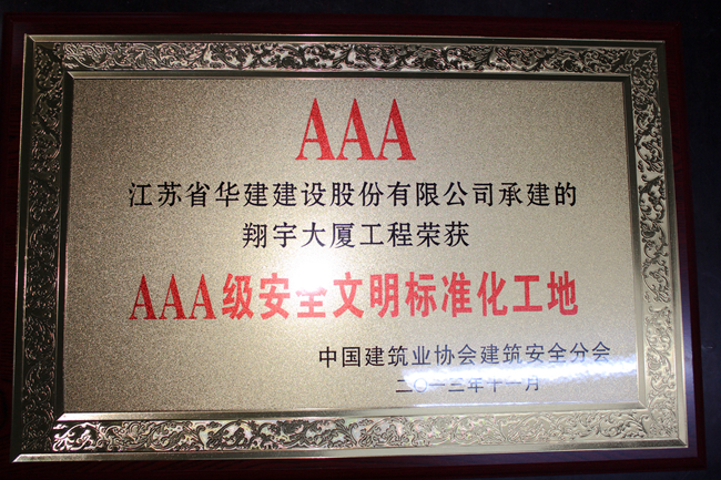 淮安翔宇大廈位于淮安市新城區重要地段,是淮安市重點工程,2011年7月開工(在建),框剪結構,為22層、總高度88.6米的高層建筑,由南樓(辦公用房)、中樓(大會堂和會議中心)、北樓(一至四層為對外服務大廳、通訊交換機房和食堂等輔助用房)及裙房(一層)和地下室(水池泵房、交配電房和汽車停車庫)組成,占地51畝、建筑面積9萬平方米,其中地下停車場面積約1.8萬平方米,工作量5億元。工程榮獲2012年江蘇省建筑施工文明工地稱號,是淮安市安全文明施工觀摩工地。2013年11月,該工程被中建協安全分會表彰為AAA級安全文明標準化工地。