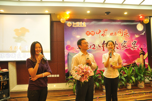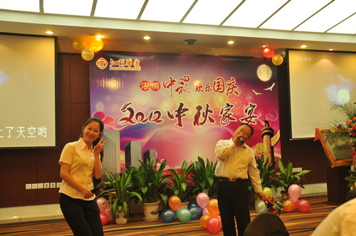 公司舉辦2012中秋家宴 時間:2012-10-06 4814 9月29日,公司在揚州西園大酒店隆重舉辦“濃情中秋,歡樂國慶——2012中秋家宴”,公司總部機關、在揚分支機構和駐外分公司回揚休假的經營層人員約百人共聚一堂,喜迎中秋、國慶佳節的來臨。家宴上,無論是領導還是普通員工,大家縱情高歌,歡樂表演,充分展現了華建大家庭其樂融融的喜慶氣氛,同時展示了華建人昂揚向上的精神風貌。