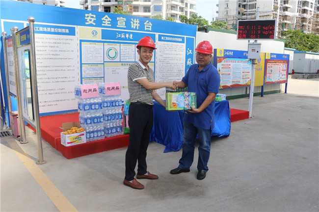 6月10日上午,海南分公司黨總支副書記、工會(huì)主席郁遠(yuǎn)帶隊(duì)走訪慰問(wèn)海口恒大·美麗沙項(xiàng)目部,檢查項(xiàng)目安全生產(chǎn)情況,并給奮戰(zhàn)在高溫、露天生產(chǎn)第一線的員工送去涼茶、綠豆、人丹等防暑用品,送去企業(yè)及工會(huì)組織的關(guān)懷。