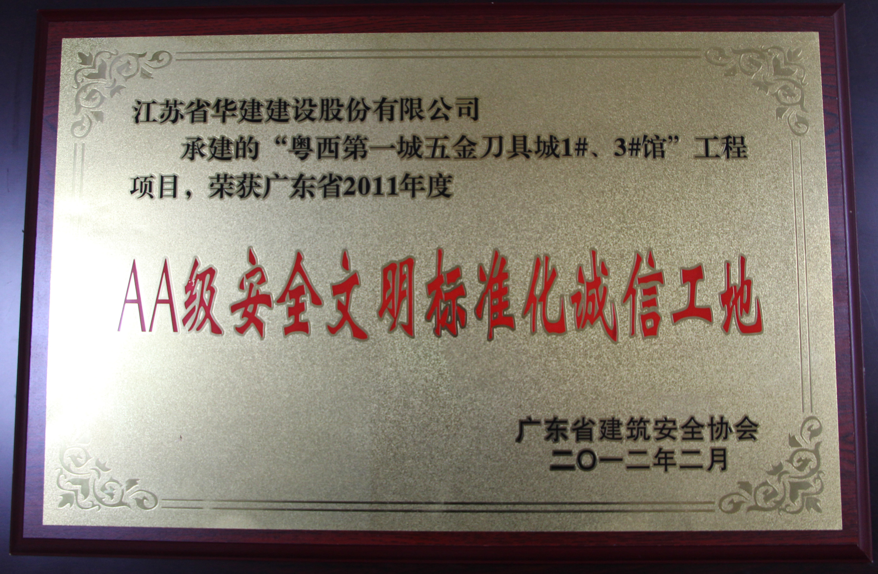 2011年陽江刀剪城項目廣東省AA級安全文明標準化誠信工地